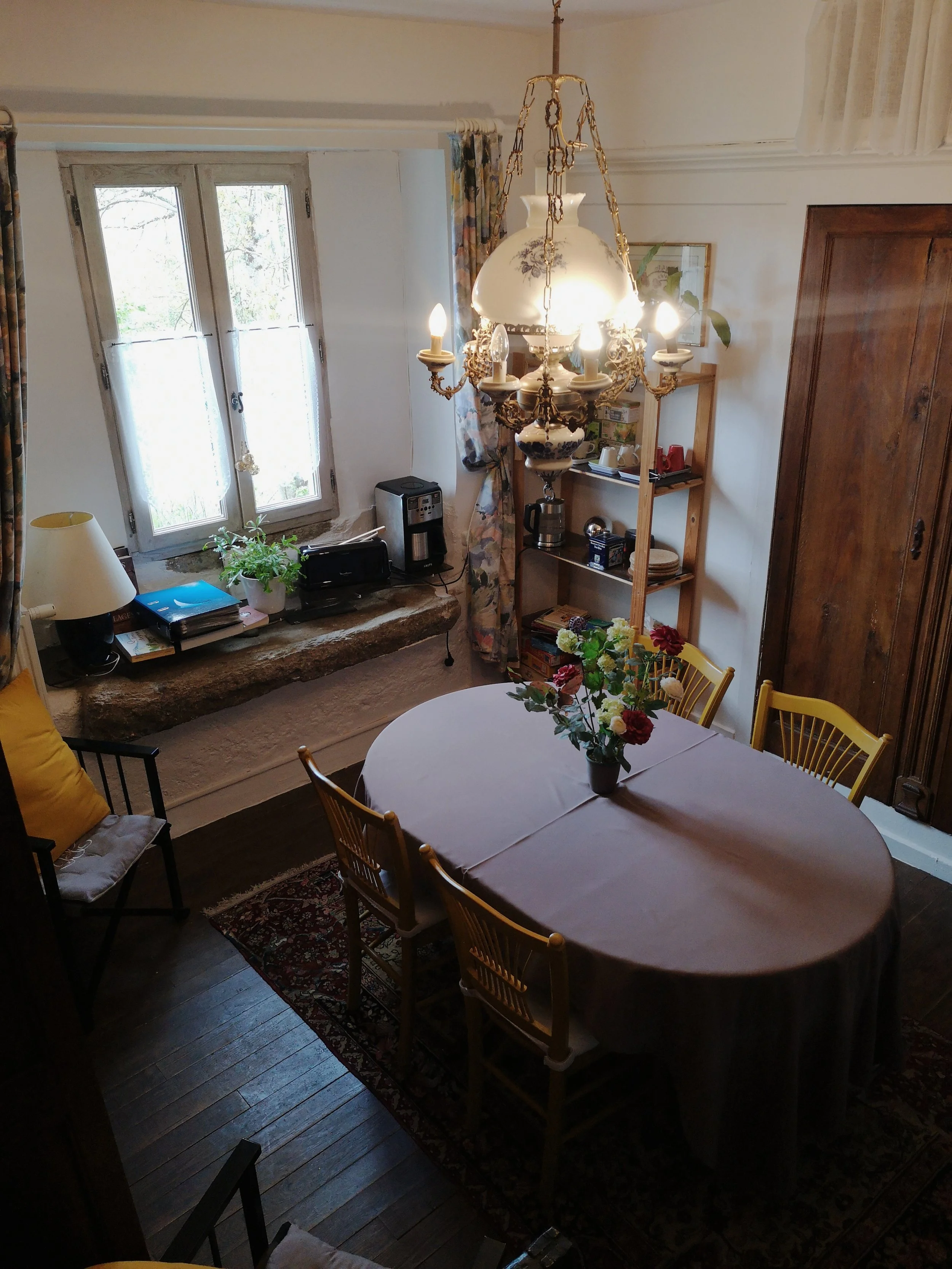 Vous apprécierez le petit déjeuner selon vôtre goût : pain, brioche et confitures maison, jus de fruits, boissons chaudes ... Qui sera servi dans le petit salon, ce lieu qui vous est réservé.